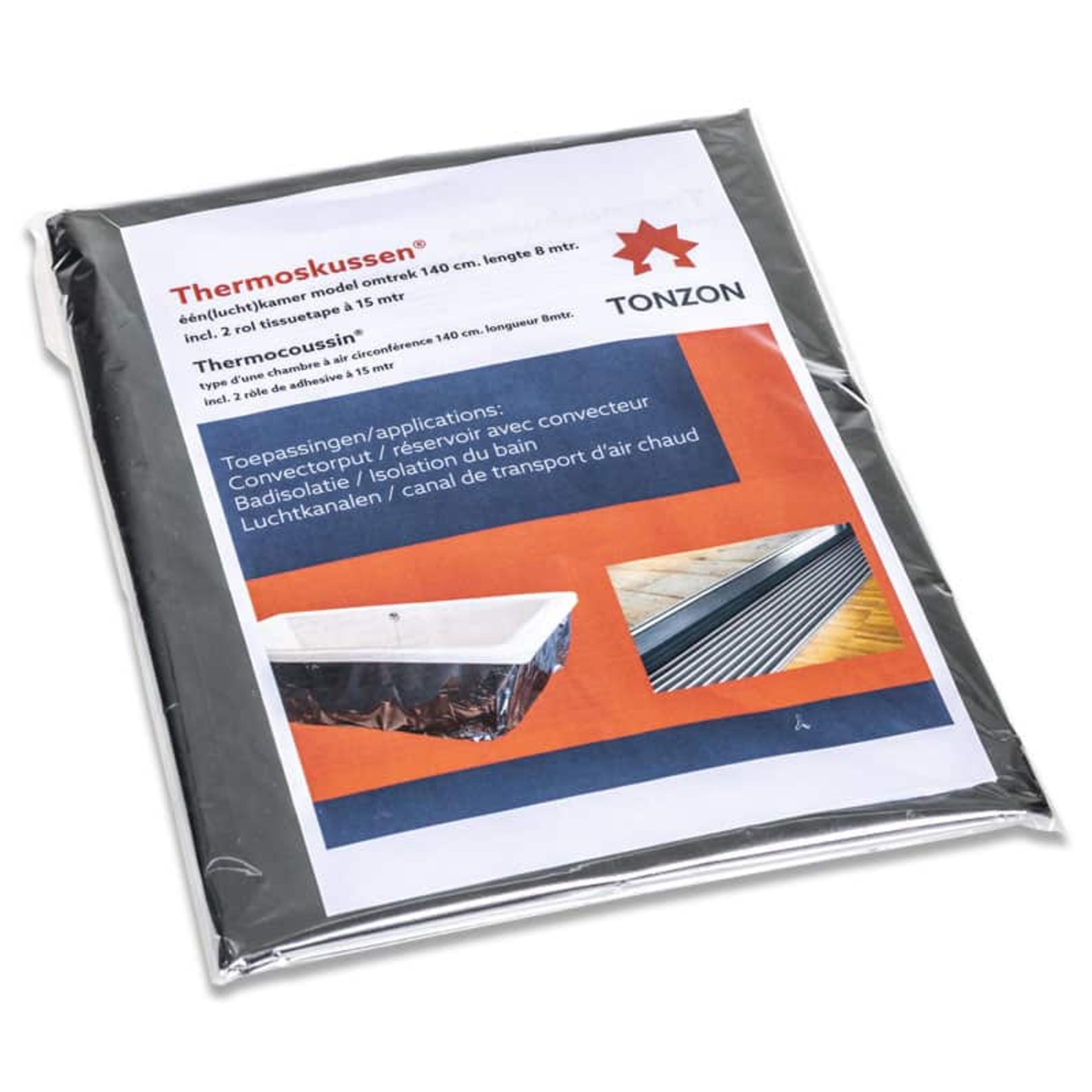 Deze badisolatie bestaat uit een TONZON thermoskussen. Dit thermoskussens in een soort luchtkussen van reflecterende folie. Door de combinatie van folie en stilstaande lucht kan je eenvoudig een goede isolatielaag om je ligbad creëren. In dit pakket zit een kussen van 70 cm breed en 8 meter lang. Als je zeker wil weten dat dit genoeg is voor je ligbad, meet dan de omtrek van je bad en de lengte aan de onderkant op. Als dit totaal minder is dan 7,5 m moet dit pakket voldoende zijn. Anders is het mogelijk om een groter thermoskussen op maat te bestellen.
